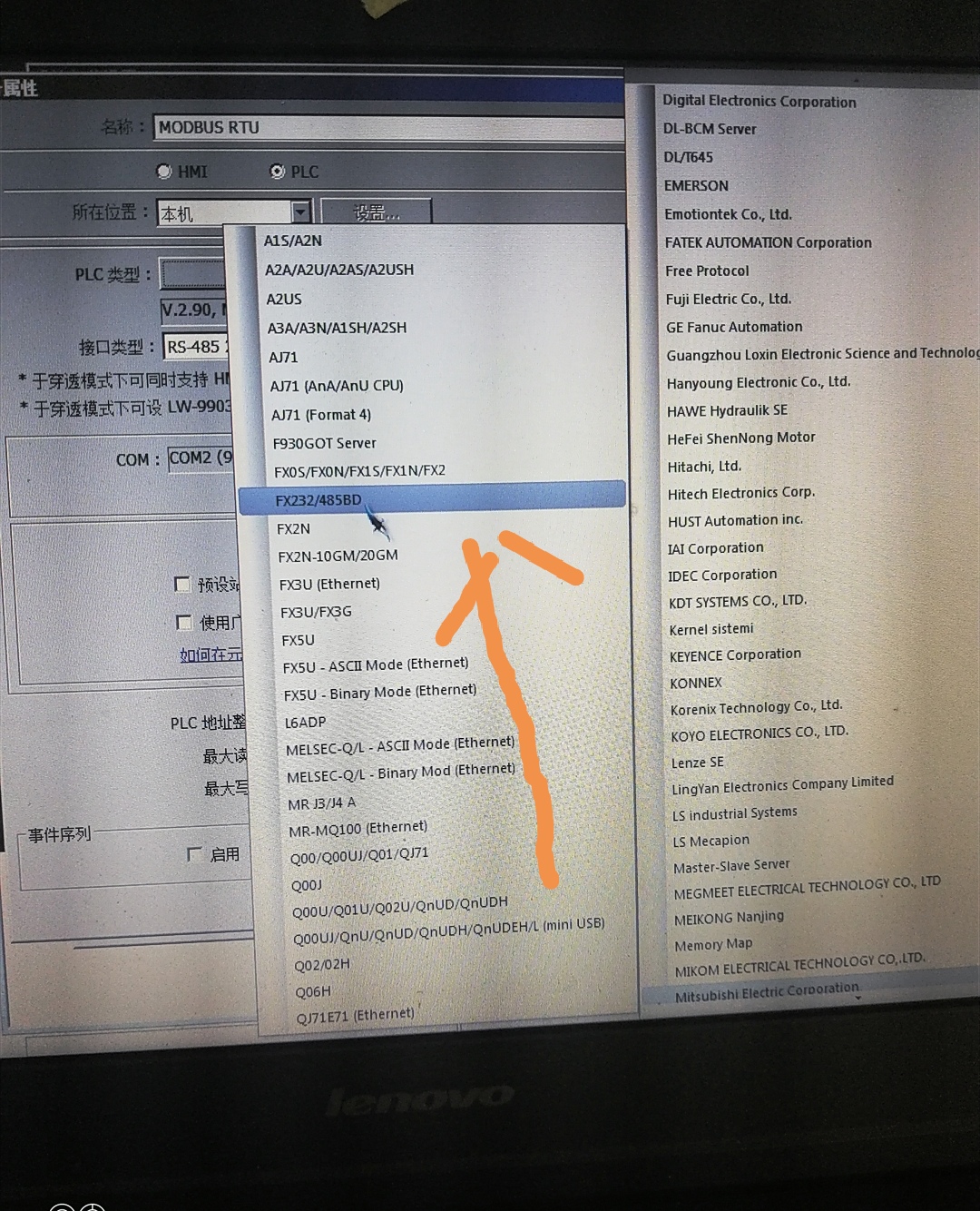 選的設備類型不對  要選三菱fx232/485 不能和普通的一樣選  注意下預設站號