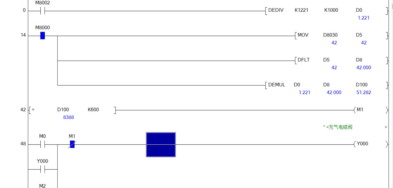 用了3U,浮點運算后得到了D100的數值,這個數值是對的,但是我在用D100的數字在和常數K600比較時候,D100數值變的很大,是什么原因