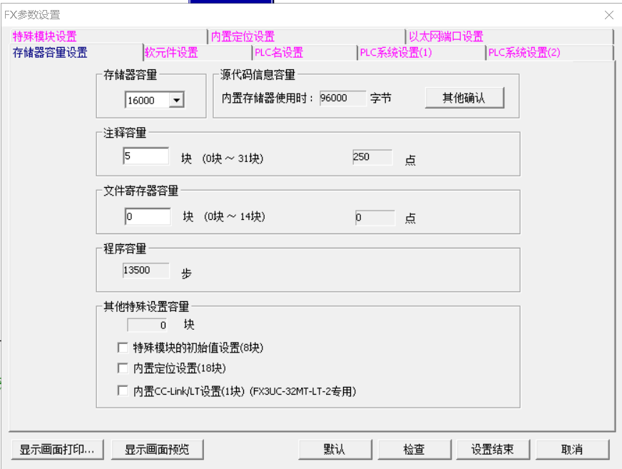 2.程序內(nèi)存、文件寄存器、注釋區(qū)域、其他的特殊設(shè)置容量包含在該存儲(chǔ)器容量中。