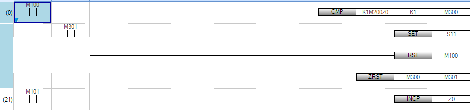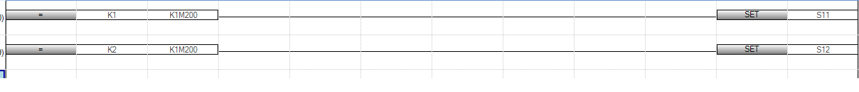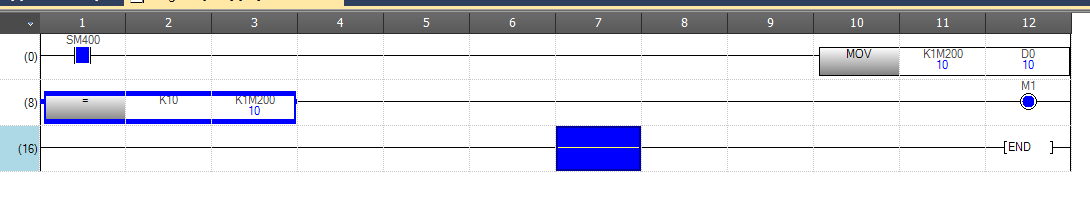 在K1M200的比較里面 如圖所示,我這個地方是M200-203全部置位有輸出但是我想問一下 其中兩個有輸出該怎么寫呢 例如M201 M203置位我就沒法比較了
