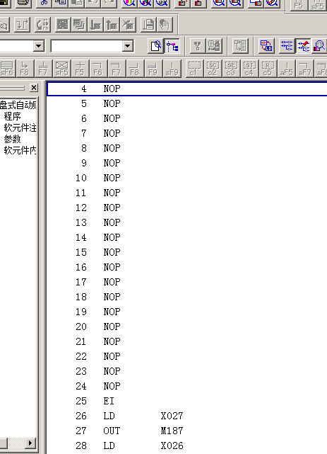 因為有輸出點Y0損壞,故上載程序(程序沒有加密,FX1N-64MR)替換輸出點為Y20重新下載到PLC,電工安裝后告知動作不正常,這時檢查上載的程序發現有異常,見附圖(EI之前都是NOP)。這是為何?第一次碰到這樣的問題,好困惑。
