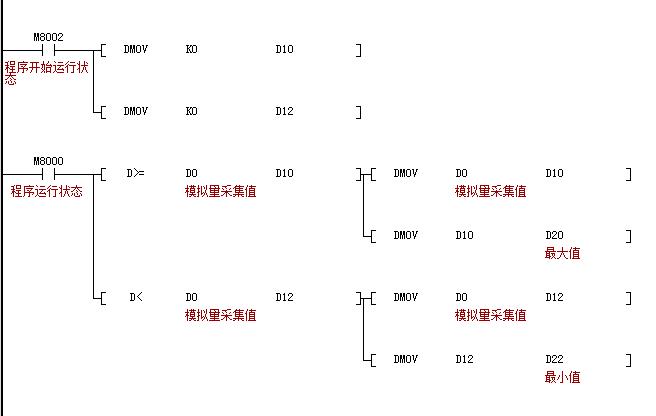 請(qǐng)教下各位大佬,三菱的模擬量的采集值在采集一次中怎么取最高最低