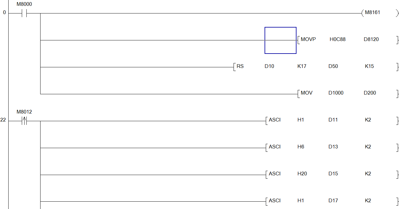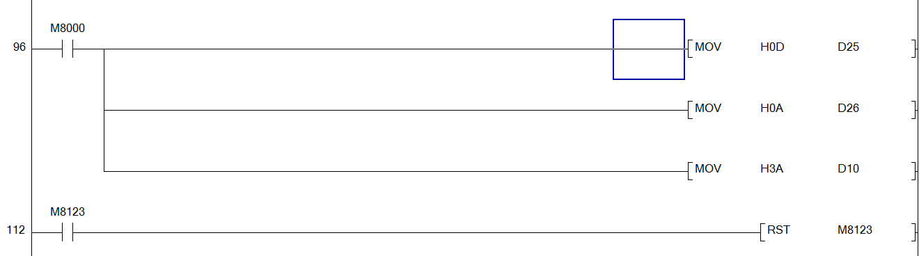 第二張梯形圖,前面是接通了M8012的上沿了。