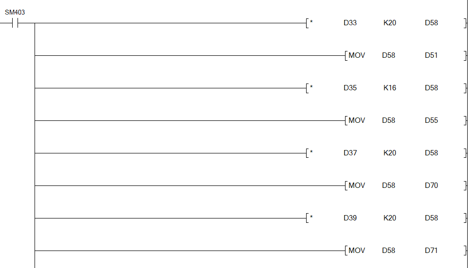 各位大神,三菱L02SCPU原有一塊L60DA4-CM模塊,后期增加一塊L60DA4-CM,發(fā)現(xiàn)新增的模塊程序監(jiān)控地址里有數(shù)值輸出,但外部輸出端子沒有量不到0~10V電壓,第一塊輸出地址是D50,D51,D52,D53,第二塊輸出地址是D70,D71,D72,D73,是不是哪里設(shè)置不對?拜托各位高手指導指導
