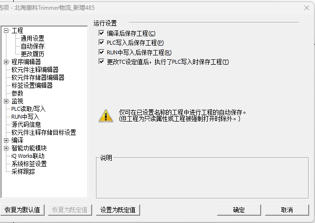 上次因系統問題重裝了一次系統,把Gxwork2和Gxwork3裝完后,因為最近項目一直用Gxwork3,沒怎么用Gxwokr2,忘記把自動保存勾選上。