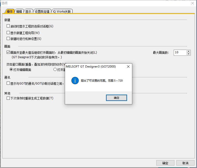 打開三菱的觸摸屏GOT 2000 軟件沒有畫面,還會顯示:超出可設(shè)置范圍,范圍5-720