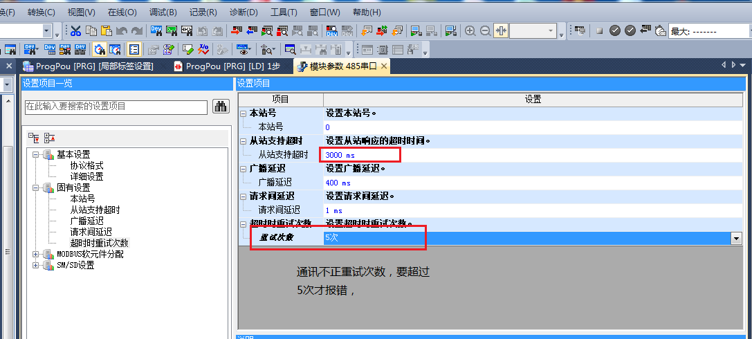通訊不正常,超過5次才報錯,若想通訊出錯就報錯,改為1次,重試一次即可