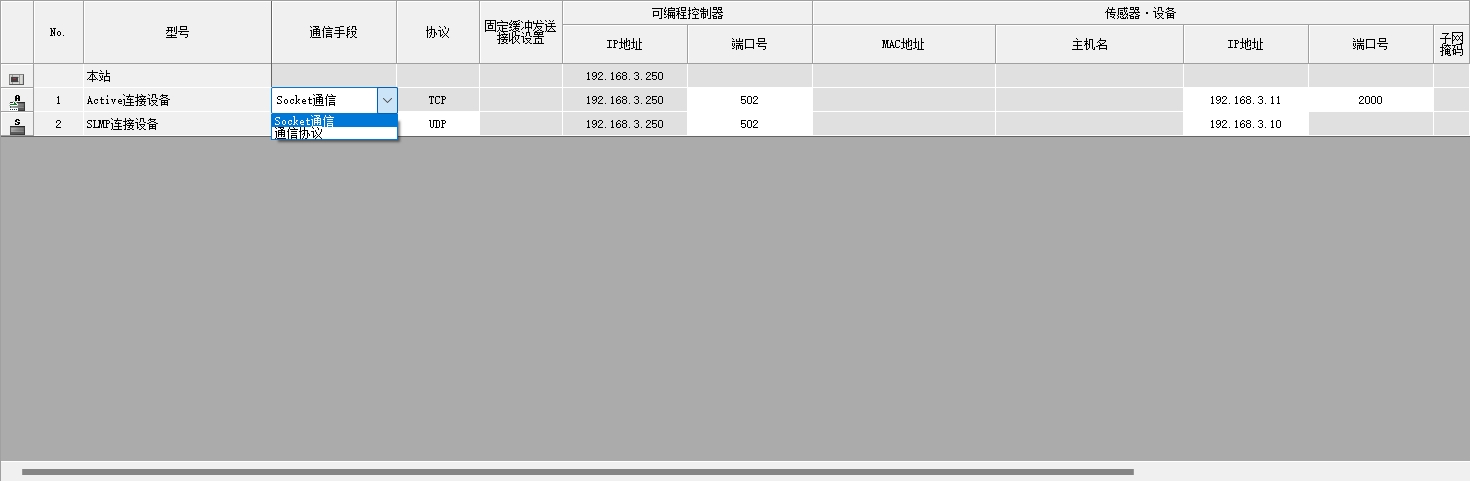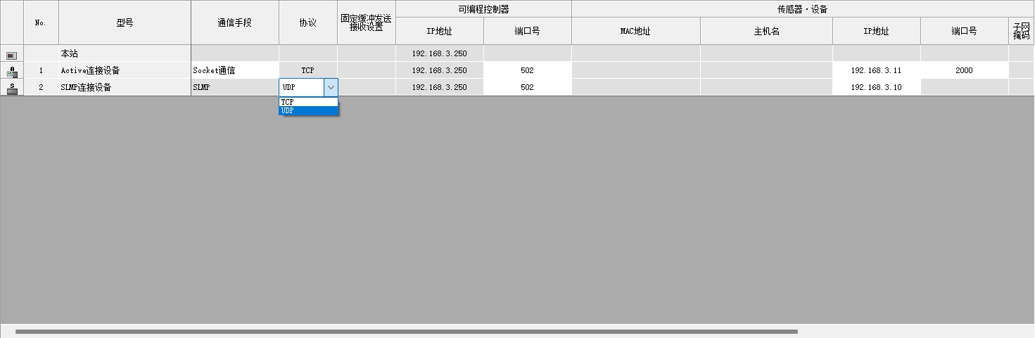 1.以太網設備可選擇ACTIVE連接設備,SLMP連接設備,UDP連接設備,請問有什么區別?是主站從站的意思嗎?