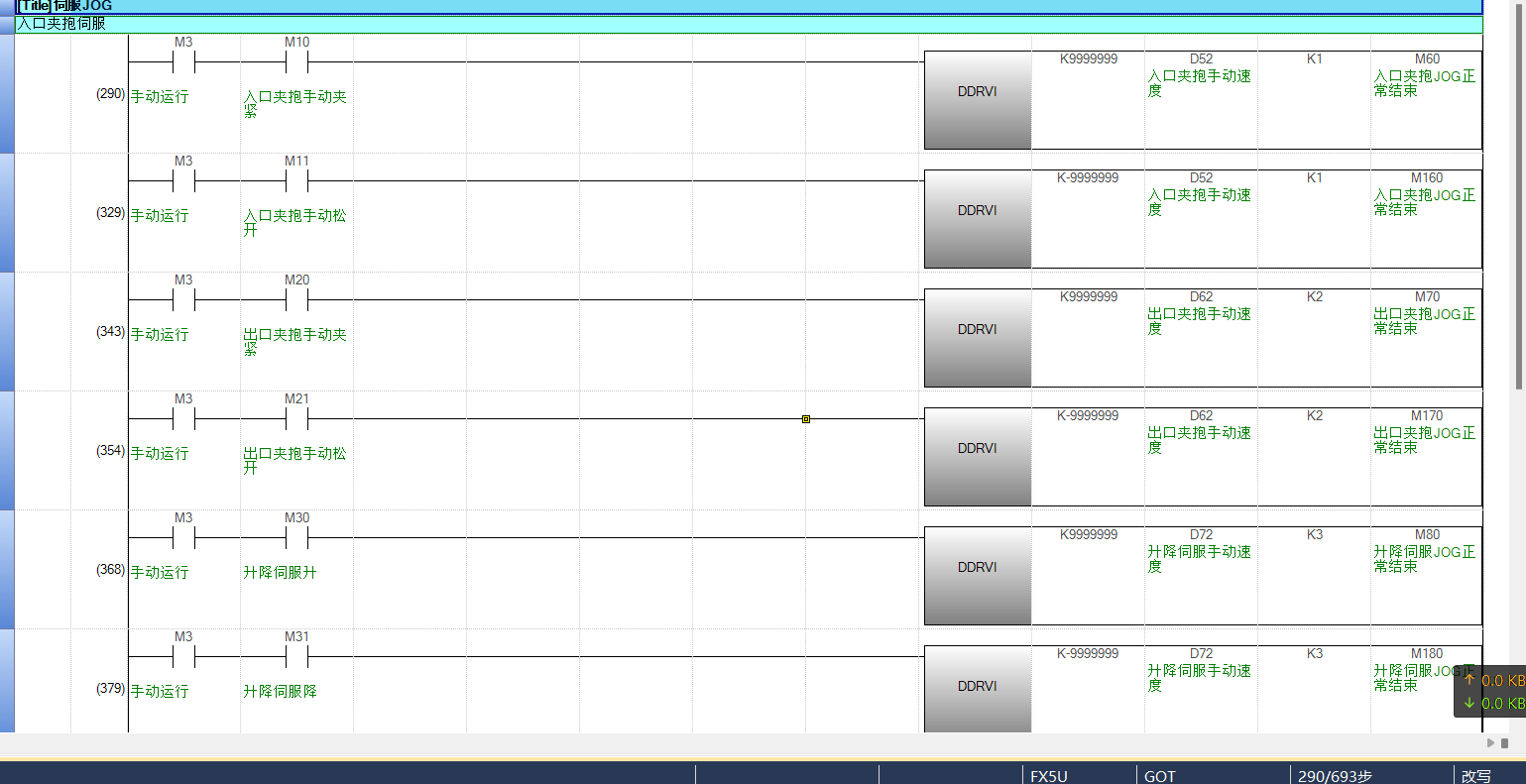 3u寫法。k99999999都是定位脈沖數。另外-K999999,就是另外一個方向的定位脈沖。現在注釋為速度。有什么特別嗎