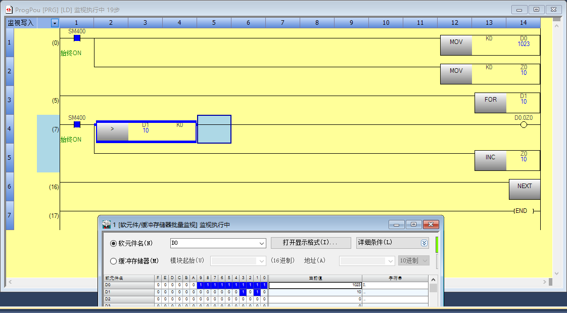 比如說我在D0里面輸入4,D2里面低4位全被置位1,;如果在在D0里面輸入5,D2里面低5位回全置位1。