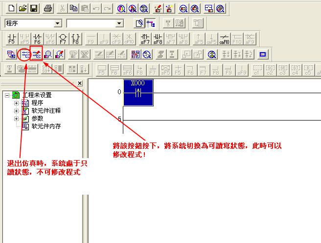 因為當退出仿真程序時,您的軟件處于只讀狀態,請您依據下圖將軟件切換為讀寫狀態。