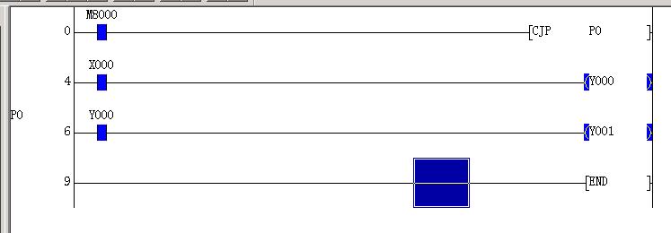 CJ  跳轉指令決定某段程序執行可不執行,如果LD  X000  OUT  Y000沒有被執行Y001不可能有輸出。