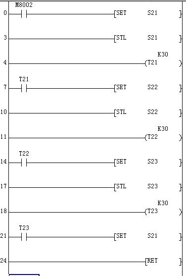 也就是當S21置位時,執行STL S21后面的程序T21記時,在T21 記時滿3S前不執行7-24步?