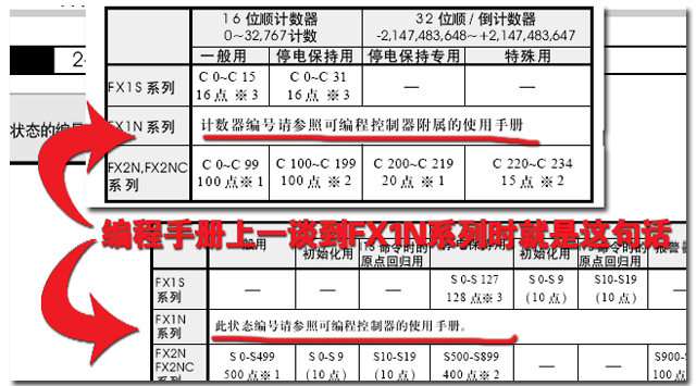 我就是覺得奇怪~!同是三菱出的編程器FX1S、FX2N、FX2NC都有介紹,一到FX1N的時候就是:什么什么參見可編程控制器使用手冊。好像FX1N有什么不可告人的秘密似的。大家的編程手冊也是這樣的?搞不懂~~!