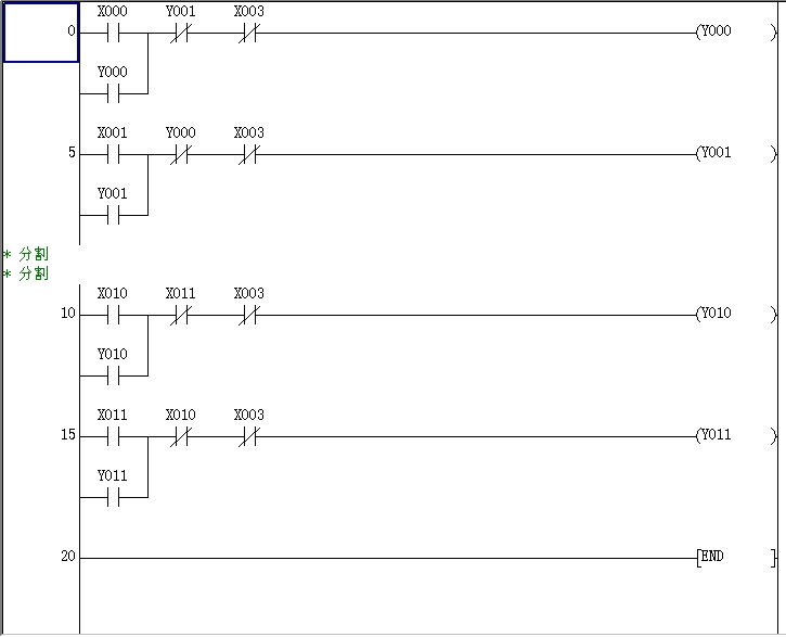 如圖Y0跟Y1互鎖若沒有按下X3停止則另一個無法動作