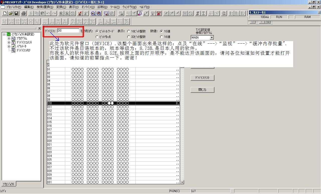 前輩們,小弟想請教一個問題: 在8.52E版本的GX-DEVELOPER軟件中如何打開像圖片一中的畫面?