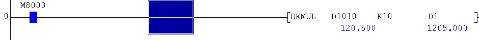 可以先測試觸摸屏,送出的值是1205 or 120.5[先把程式stop,用monitor方式d1010]