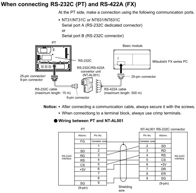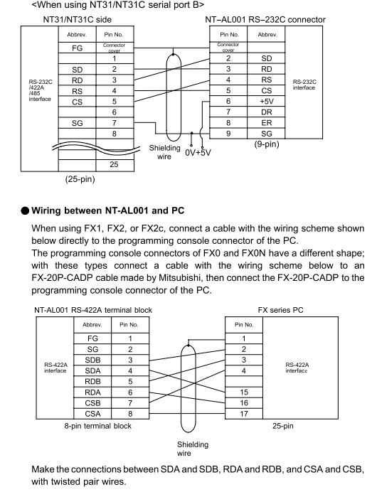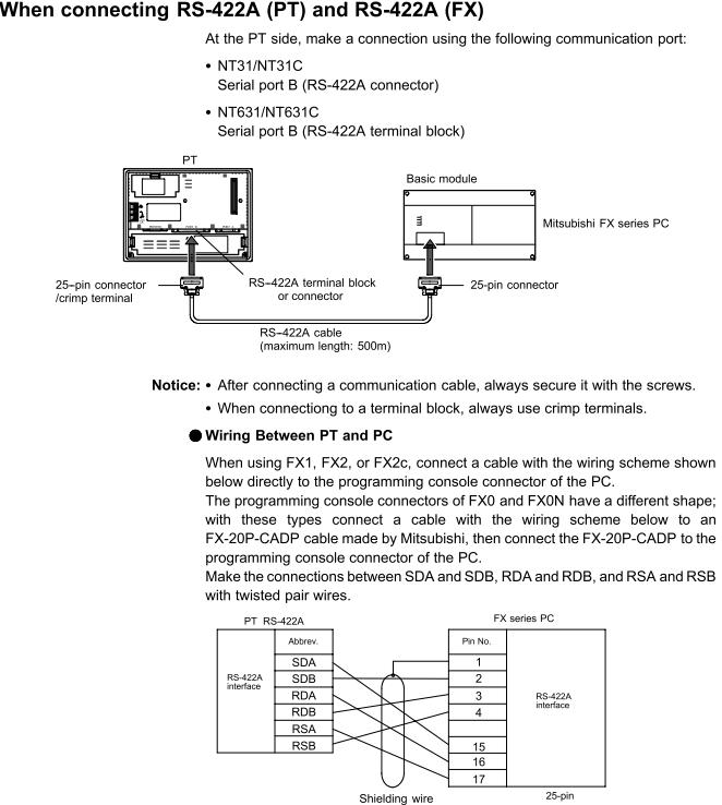 我用FX2n的編程電纜SC-09 9針對(duì)25針(RS422)線,再通過(guò)25針口連接OMRON NT31C的portA或portB口,參考OMRON公司