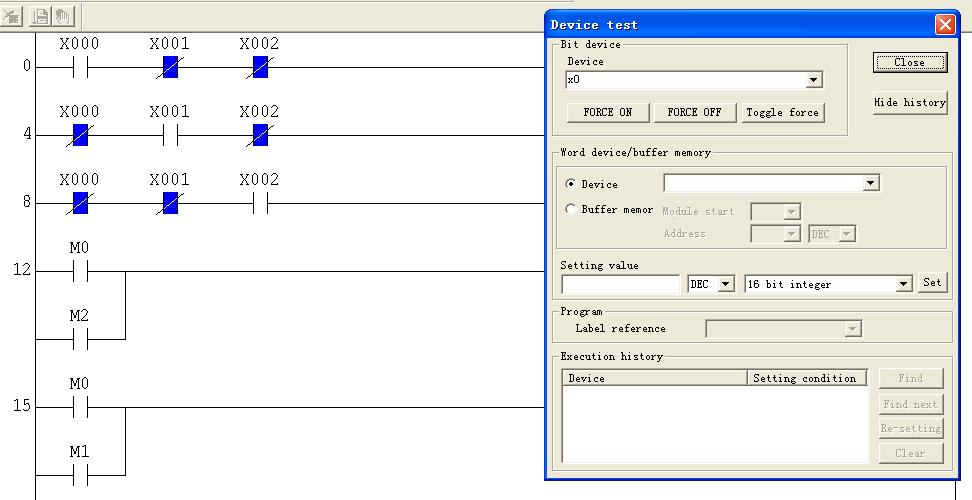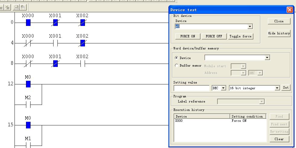 三菱的PLC在GX中不能強制X的,可以用短線直連COM端和需要檢測的輸入點,看有沒信號來判斷輸入點有沒問題,沒問題那就是現場接線問題.