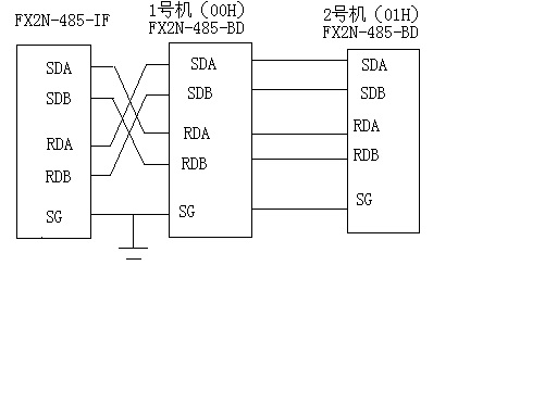 引用引用樓主vigo912zw于2010-03-09 10:11發表的 新人請教三菱PLC的RS485通信 :本人剛剛接觸三菱PLC,遇到一個棘手的問題,希望有高手能幫忙解決當我用PC+FX2N-485-IF+FX2N-485-BD+FX2N型PLC這種連接方式控制PLC一號機時,可以正常的讀取、修改PLC一號機的數據。但是我按下圖的連接,在一號機PLC后再串聯一臺二號機PLC,兩臺PLC均不能正常通信。兩臺PLC的站號設置均檢查過,沒有問題。FX2N-485-BD上的兩個LED燈也能正常的亮滅。