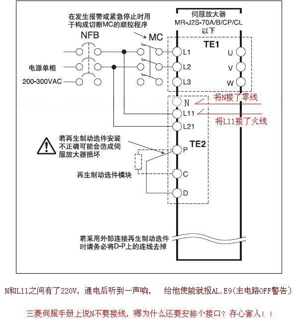 三菱伺服手冊上說N不要接線,卻安排 N 接口