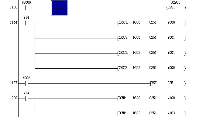 當D300與C251值相等時置位Y1并復位Y2,當D302與C251值相等時置位Y2并復位Y1