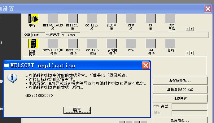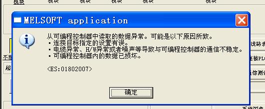 各位大俠,我最近拆了一臺FX2N PLC 里面存有程序,我想用GX編程軟件讀取出來,通訊電纜和電源都已經(jīng)接通 連接上 PLC也撥到了run 的位置,可是讀取的時候出現(xiàn)如下圖提示,不知道為啥,因為第一次弄,不明白原因,請大家不吝賜教,謝謝