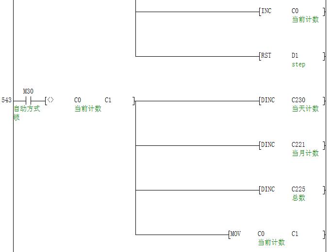 抱歉,因個人平時用32位計數器用的少,才把c220,c221等32位計數器當成了16位來分析,經查找資料證實,C220至C234為32位掉電保持型增/減計數器,配套使用的有增計數/減計數切換用的輔助繼電器M8220至M8234.敬請諒解!