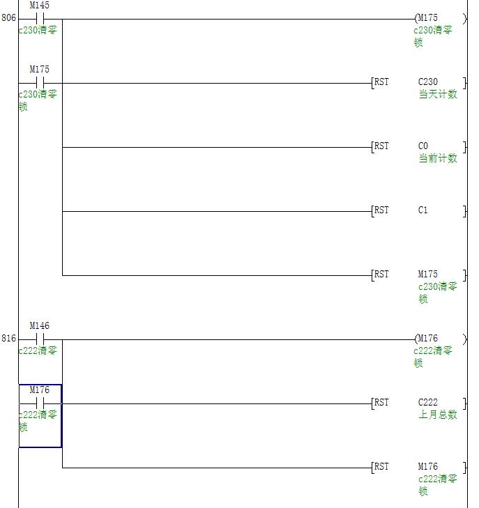 在監視模式下強制M145、M146等,M145接通了,但C22x就是值不變!程序中只有以上片段對這些軟元件進行過操作!