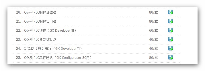 以上為三菱出售的Q系列手冊(cè),其培訓(xùn)網(wǎng)站有關(guān)於出售的信息: