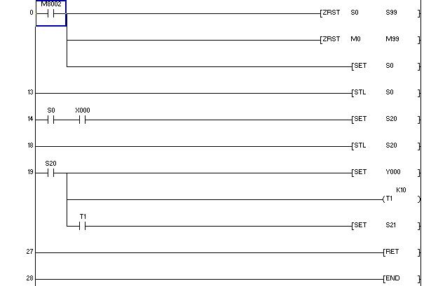 以上是梯形圖GX里的寫法,如果用SFC編你自己看手冊吧,幾句話說不清楚