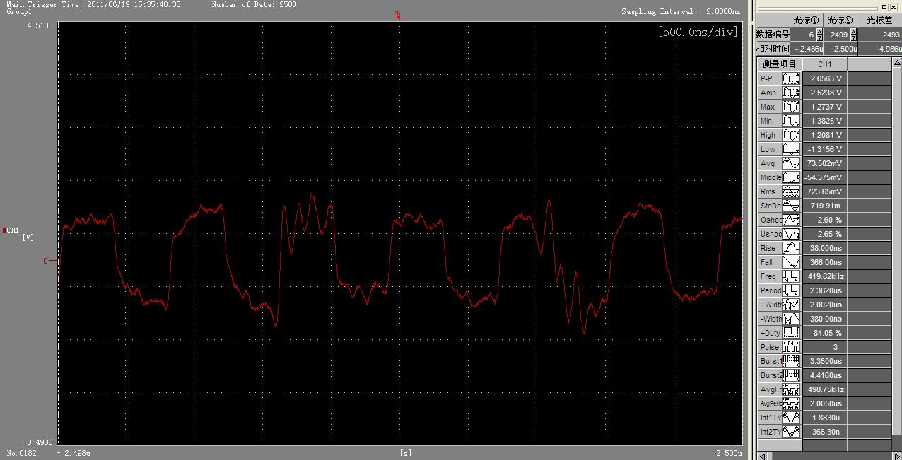 所致。用示波器測量該變頻器端的CC-LINK通訊信號,發現確實衰減很大,而且波形雜亂: