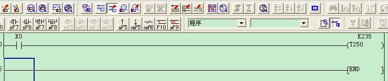 在梯形圖模式下,直接鍵入OUT T250 K235;或者,先選擇—(  )—,再鍵入T250 K235。