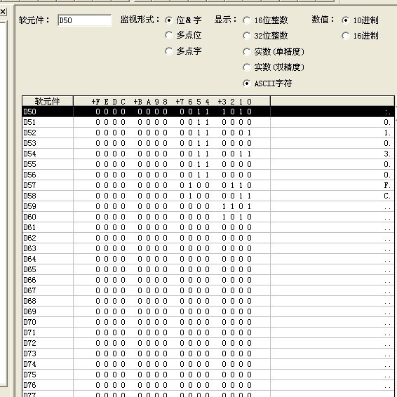 我是這樣理解D50是回傳的信息,塊轉移到D70 d70以后的寄存器就是我要的數據信息,回傳的第一個字符是:然后站號 01  03 我都能收到就是以后的數據沒有00000000