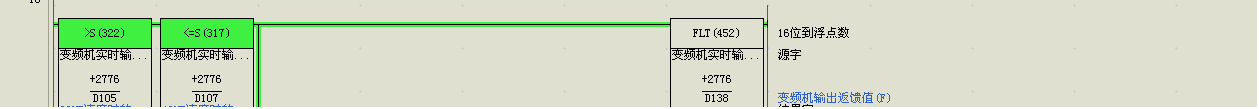 富士的變頻器   FM端為變頻器返回值  頻率不變的情況下   返回值怎么變化的幅度這么大?  幅度是幾十對我來說沒影響  這都近五百了     返回值送給了CP1H的201  也就是AD轉換的第二口