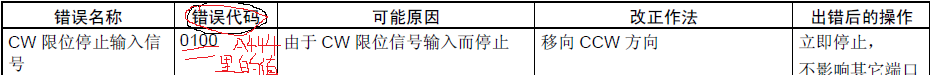 Sorry,我的表述有問題,舉個例子,電機的極限感應器壞了處于常on狀態,這時我進行找原點操作后PLC報警,如果是0脈沖輸出的話A444地址里有一個數字,我如何在不知道此感應器是壞的前提下查出所對應的PLC異常?CP1H op manual W450-CN5-02操作手冊里貌似查不到啊!