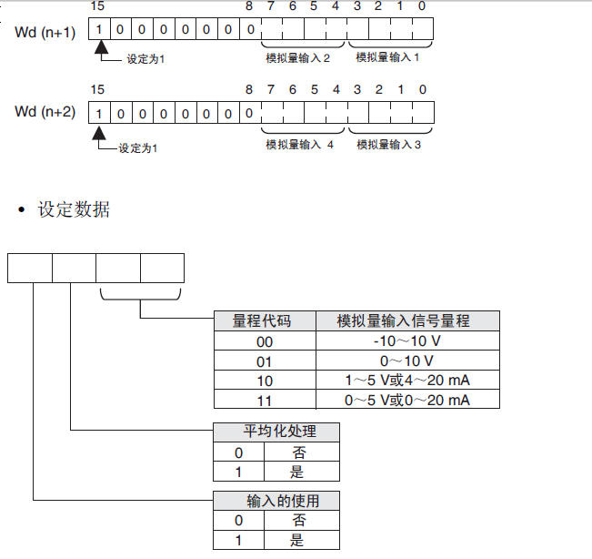 所以分配給AD041的輸入通道地址為,CIO2~5,設定字地址為CIO102,103.