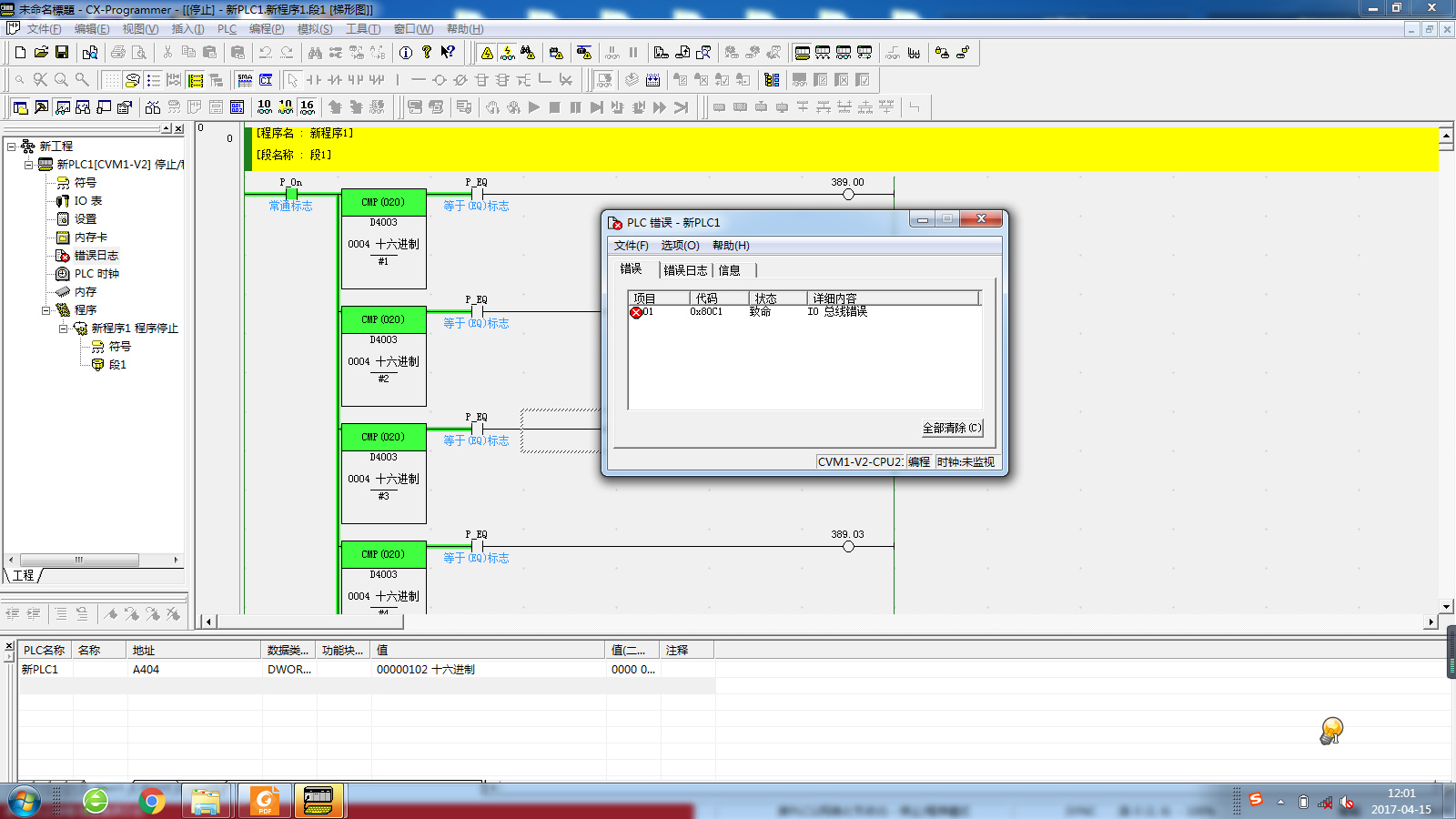 剛剛接觸一臺(tái)年齡比我小兩歲的設(shè)備,用的是CVM1-V2的PLC。