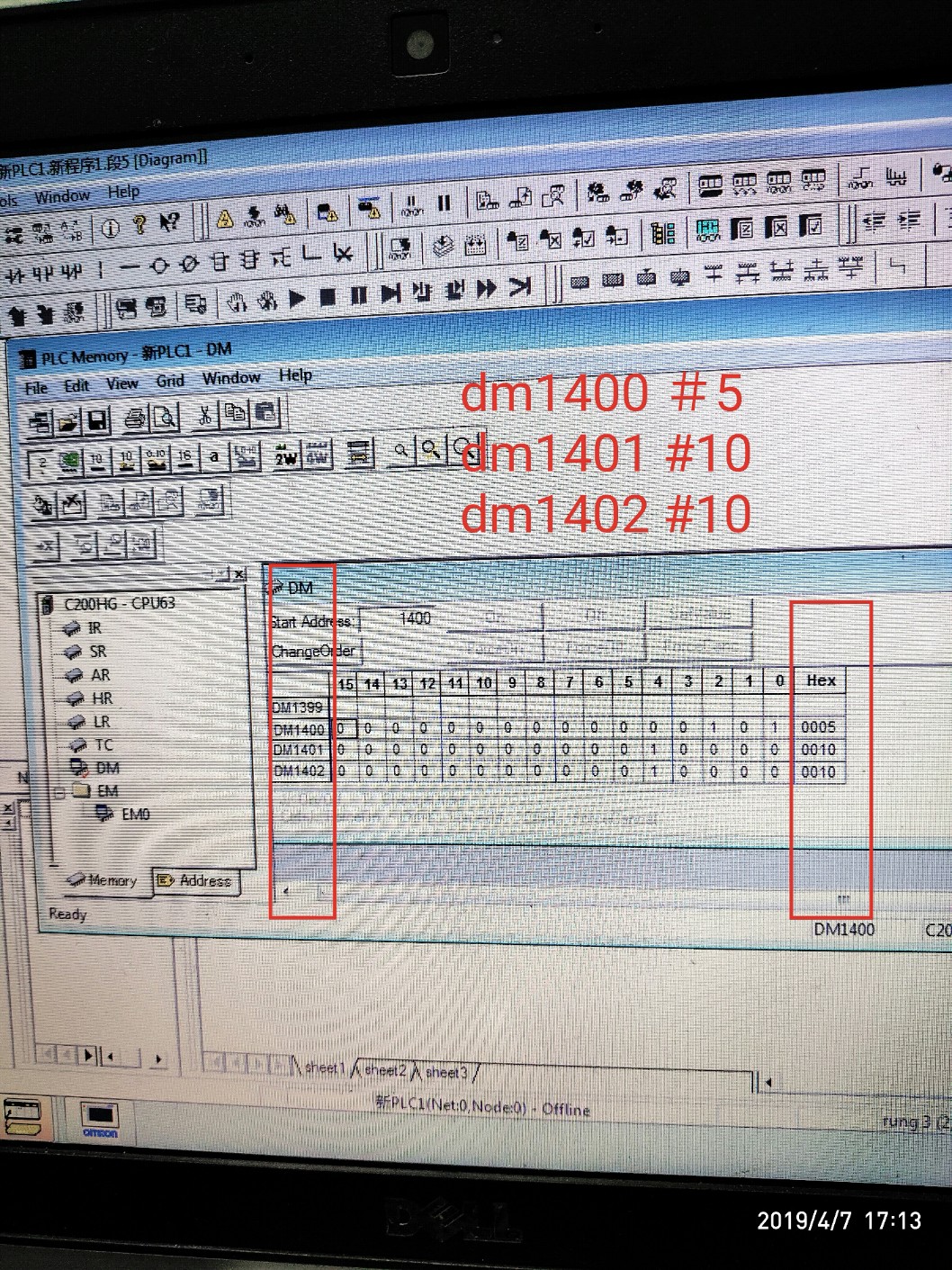 背景:plc程序備份了,但是dm區(qū)沒備份。原來plc壞掉了。