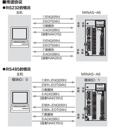 在松下驅動器A6的手冊中,使用串口通訊,通訊協議如下圖所述,