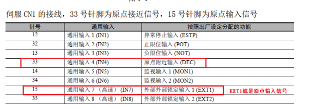 實在是CP的用習慣了,轉不過彎來,總以為原點和原點接近信號是要接在PLC的固定IN點上,實際上是接在伺服驅動器CH端口的通用輸入上,以后還是得多留點心。。。