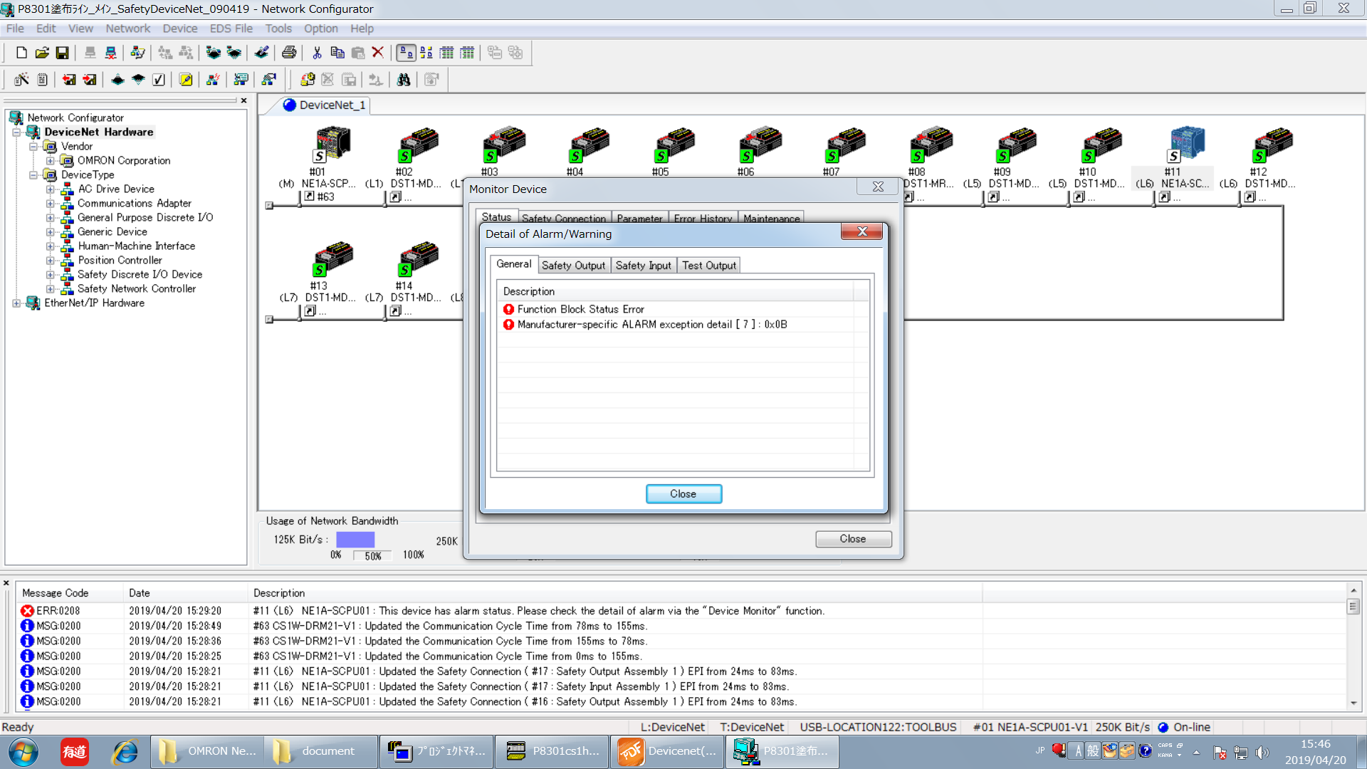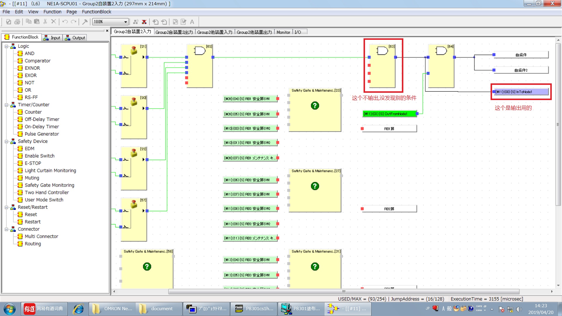 先謝謝各位大大的幫助.本人剛使用歐姆龍NE1A-SCPU01安全模快,內部的程序是以前編好的.由于原來的NE1A-SCPU01安全模快壞掉了,新的買回來下載程序啟動報警見圖一,圖二是運用的網絡,圖三是內部程序.在內部程序在線監視時發現有一功能塊無反應.請各位幫看一下是什么問題,非常謝謝各位了.麻煩各位了