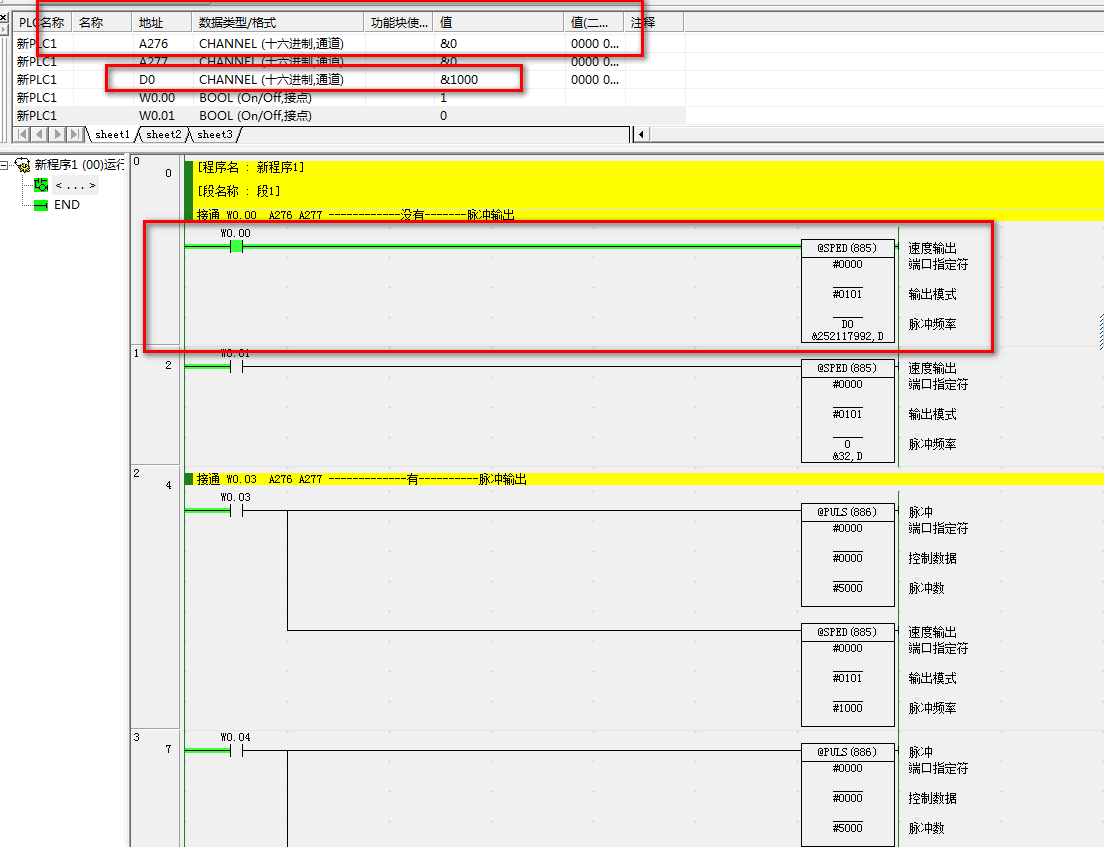 師傅,沒脈沖輸出你就是清空內存就可以了嗎,我也用的PLUS和SPED指令,和你的程序比較是一樣的,我的PLC一關電在重啟就沒脈沖輸出