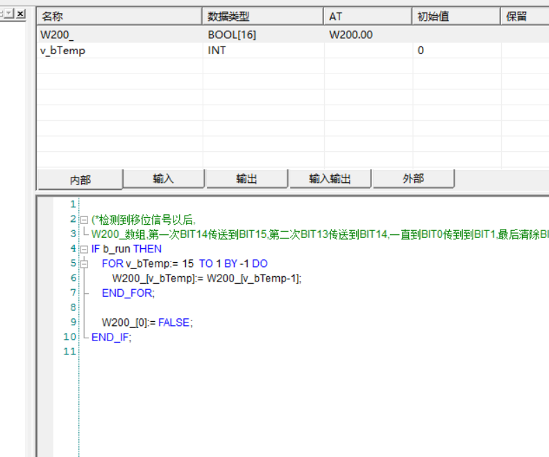 ST數(shù)組也簡(jiǎn)單,無非把16個(gè)BOOL移位一次就行,