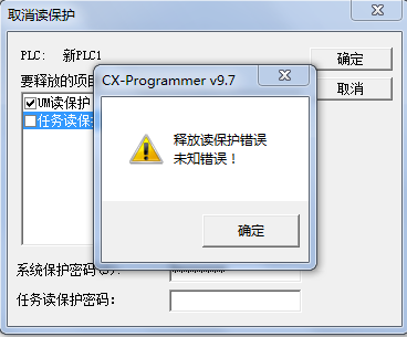 2個CP1H需用工具解密,結果2個PLC 的UM密碼和任務密碼一樣的。分別對2個PLC - 保護 - 釋放密碼,其中一個釋放密碼顯示成功,可上載程序;另一個顯示釋放讀保護錯誤,無法繼續上載程序。用解密工具試第二次得到的UM密碼、任務密碼與另一臺是一樣一樣的,搞不懂是什么原因?