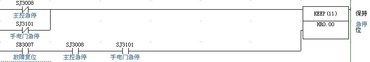 這條程序的意思是不是說:不管是主控急停或者是手電門急停,系統都會進入急停位,而當故障復位,主控急停解除,手電門急停解除,系統才能解除急停狀態。另外就是是后面那個“KEEP 11  HRO0.0 ”不是很理解 我看很多程序圖里面有類似符號   能幫忙解釋下么?