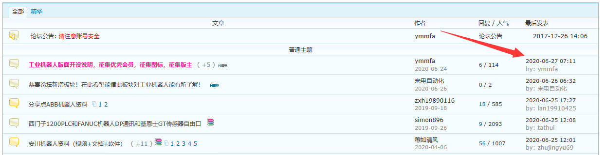 執行帖子提前功能后就會顯示成【發帖時間】+【提前時間】,這樣就會把帖子【最后回復】的時間推遲,才能排序成最新貼。