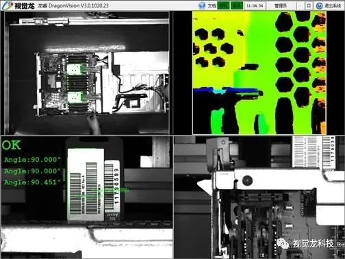 采用“龍睿旗艦型”的2D和3D視覺檢測技術,由2個機械手分別攜帶2D相機和3D傳感器,對服務器的內觀和外觀進行檢測。檢測標簽是否粘貼、對齊、破損,插接件類如內存卡、卡勾扣檢測,墊片的安裝檢測,螺絲的有無,擰花檢測,掃碼追溯查詢等。檢測漏檢率0%,檢測過檢率<1%,設備故障率<0.2%。