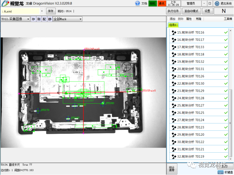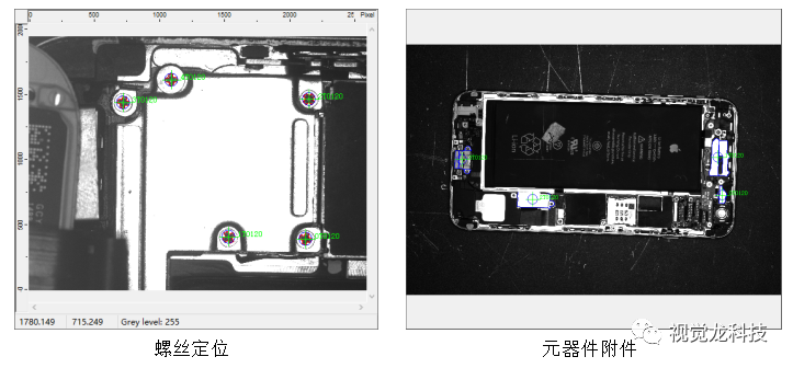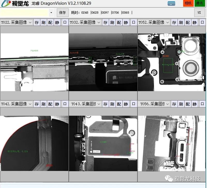 采用“龍睿旗艦型”的視覺檢測技術,檢測手機內部零件的變形、外露、偏移、未組裝到位、螺絲未鎖、螺絲浮高等。