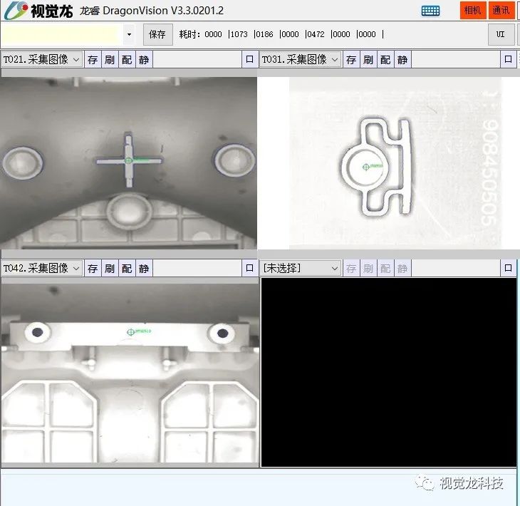 采用“龍睿型”的視覺定位技術,工位1定位產品中間十字后,引導機械手進行多位置組裝。工位2對產品中間輪廓進行定位后,引導機械手多位置組裝。工位3對產品中間孔與橢圓進行定位后,引導機械手進行組裝。定位精度0.03mm。